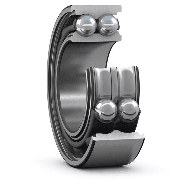 In anderen Szenarien kann ein einziges zweireihiges Schrägkugellager ausreichen. Diese Ausführung integriert zwei Schrägkugellager Rücken an Rücken in denselben Ring. Im Querschnitt besteht es im Wesentlichen aus zwei einzelnen Schrägkugellagern. Sein Hauptvorteil ist die geringere Breite im Vergleich zu zwei einreihigen Lagern, was Platz spart und Montage vereinfacht – funktional entspricht es einem Paar einreihiger Lager in O-Anordnung.