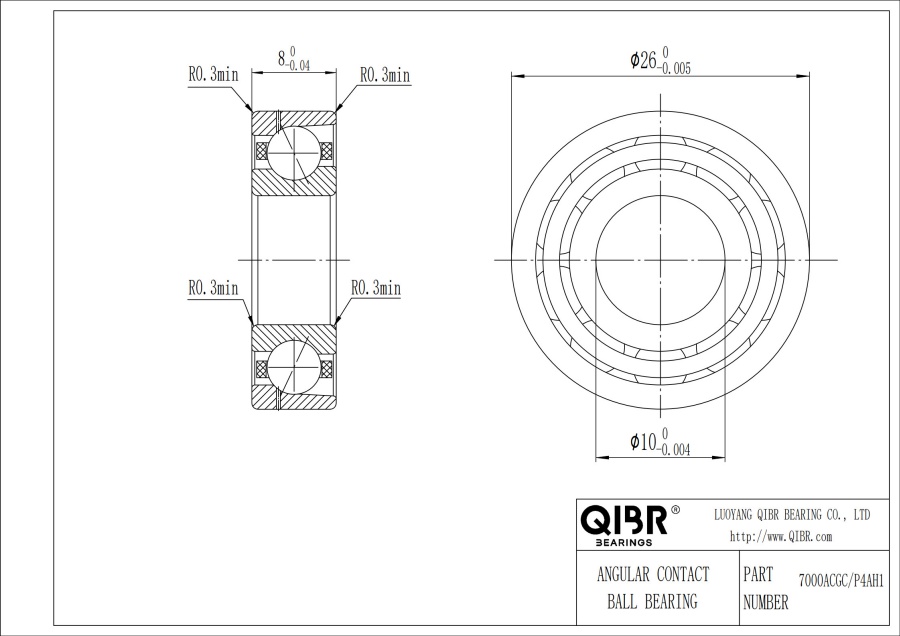 7000ACGC/P4AH1 Schrägkugellager, geräuscharm, hohe Drehzahlfähigkeit, Inner diameter (d) ist 10 mm, Outer diameter (D) ist 26 mm, Width (B) ist 8 mm, Mass ist 0.019 kg. Es eignet sich für Vorderräder von Kleinwagen, Wellen des Differentialritzels, Druckerhöhungspumpen und Bohrplattformen usw. und ist das am häufigsten verwendete Lager unter Bedingungen, die hohe Geschwindigkeit erfordern.
