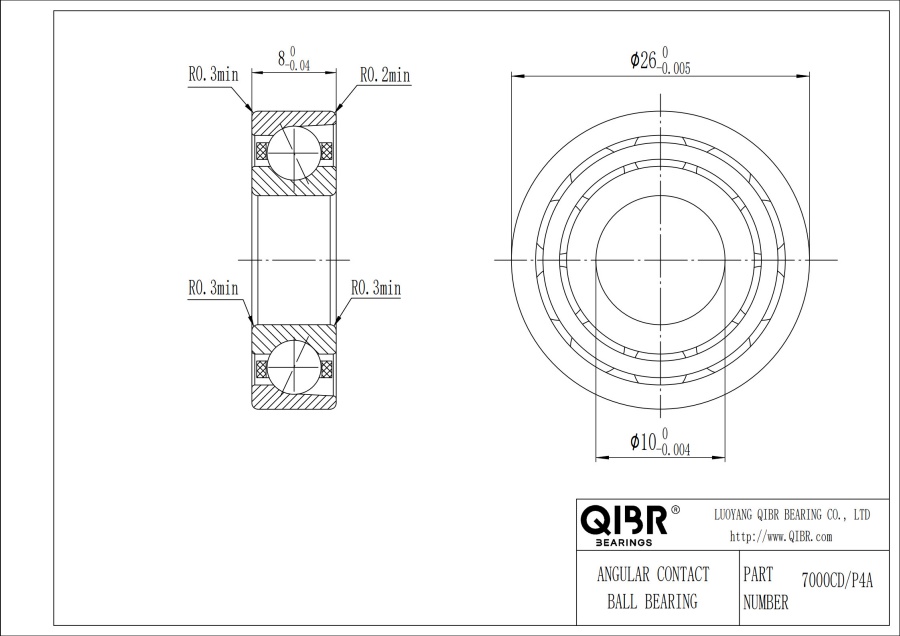 7000CD/P4A Schrägkugellager, geräuscharm, hohe Drehzahlfähigkeit, Inner diameter (d) ist 10 mm, Outer diameter (D) ist 26 mm, Width (B) ist 8 mm, Mass ist 0.019 kg. Es eignet sich für Vorderräder von Kleinwagen, Wellen des Differentialritzels, Druckerhöhungspumpen und Bohrplattformen usw. und ist das am häufigsten verwendete Lager unter Bedingungen, die hohe Geschwindigkeit erfordern.