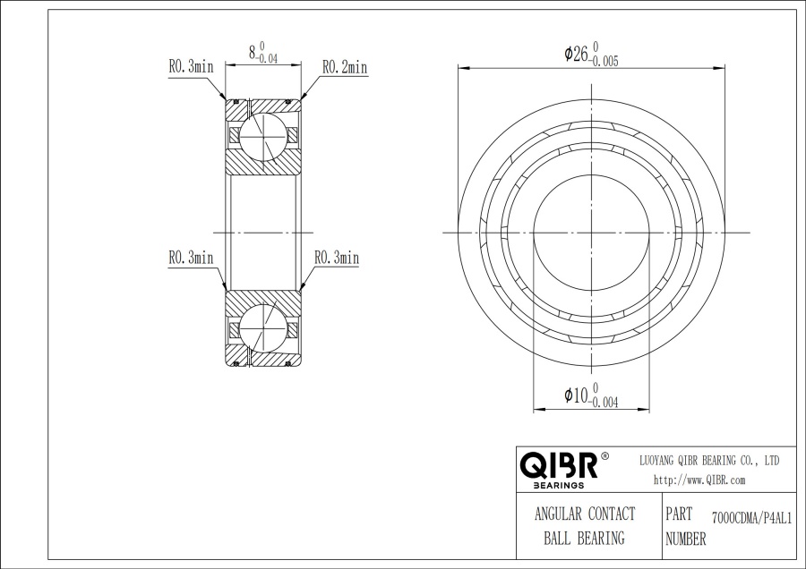 7000CDMA/P4AL1 Schrägkugellager, geräuscharm, hohe Drehzahlfähigkeit, Inner diameter (d) ist 10 mm, Outer diameter (D) ist 26 mm, Width (B) ist 8 mm, Mass ist 0.019 kg. Es eignet sich für Vorderräder von Kleinwagen, Wellen des Differentialritzels, Druckerhöhungspumpen und Bohrplattformen usw. und ist das am häufigsten verwendete Lager unter Bedingungen, die hohe Geschwindigkeit erfordern.