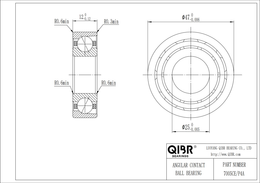 7005CE/P4A Schrägkugellager, geräuscharm, hohe Drehzahlfähigkeit, Inner diameter (d) ist 25 mm, Outer diameter (D) ist 47 mm, Width (B) ist 12 mm, Mass ist 0.074 kg. Es eignet sich für Vorderräder von Kleinwagen, Wellen des Differentialritzels, Druckerhöhungspumpen und Bohrplattformen usw. und ist das am häufigsten verwendete Lager unter Bedingungen, die hohe Geschwindigkeit erfordern.