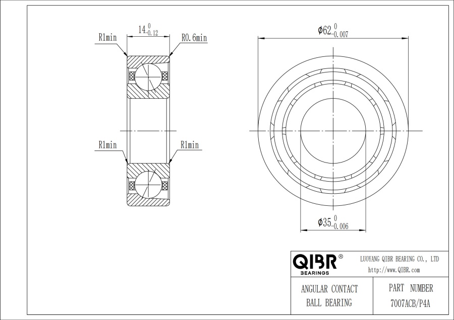 7007ACB/P4A Schrägkugellager, stabile Leistung, nicht leicht zu beschädigen, einfache Wartung. 7007ACB/P4A Schrägkugellager, kann gleichzeitig Radiallast und bestimmte Axiallast tragen, geeignet für mechanische Geräte mit hohen Leistungsanforderungen.