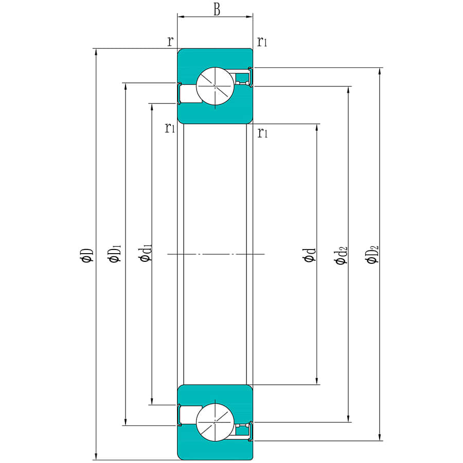 35 TAC 72B DDG Schrägkugellager, Kontaktwinkel, hohe Tragfähigkeit, Inner diameter (d) ist 35 mm, Outer diameter (D) ist 72 mm, Width (B) ist 15 mm. Es eignet sich für Bearbeitungszentren, Hochfrequenzmotoren, Gasturbinen und Lenkgetriebe usw. und ist das am häufigsten verwendete Lager mit hoher Tragfähigkeit.