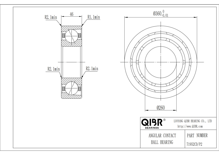 71952CD/P2 Schrägkugellager, geräuscharm, hohe Drehzahl, Inner diameter (d) beträgt 260 mm, Outer diameter (D) beträgt 360 mm, Width (B) beträgt 46 mm, Mass ist 12 kg. Es ist geeignet für Vorderräder von Kleinwagen, Differentialritzelwellen, Druckerhöhungspumpen und Bohrplattformen usw. und das am häufigsten verwendete Lager unter Bedingungen, die hohe Drehzahlen erfordern.