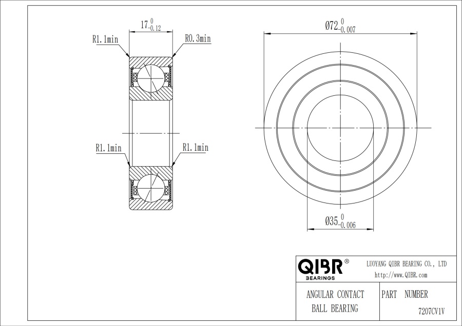 7207CV1V Schrägkugellager, geräuscharm, hohe Drehzahl, Inner diameter (d) beträgt 35 mm, Outer diameter (D) beträgt 72 mm, Width (B) beträgt 17 mm, Mass ist 0.280 kg. Es ist geeignet für Vorderräder von Kleinwagen, Differentialritzelwellen, Druckerhöhungspumpen und Bohrplattformen usw. und das am häufigsten verwendete Lager unter Bedingungen, die hohe Drehzahlen erfordern.
