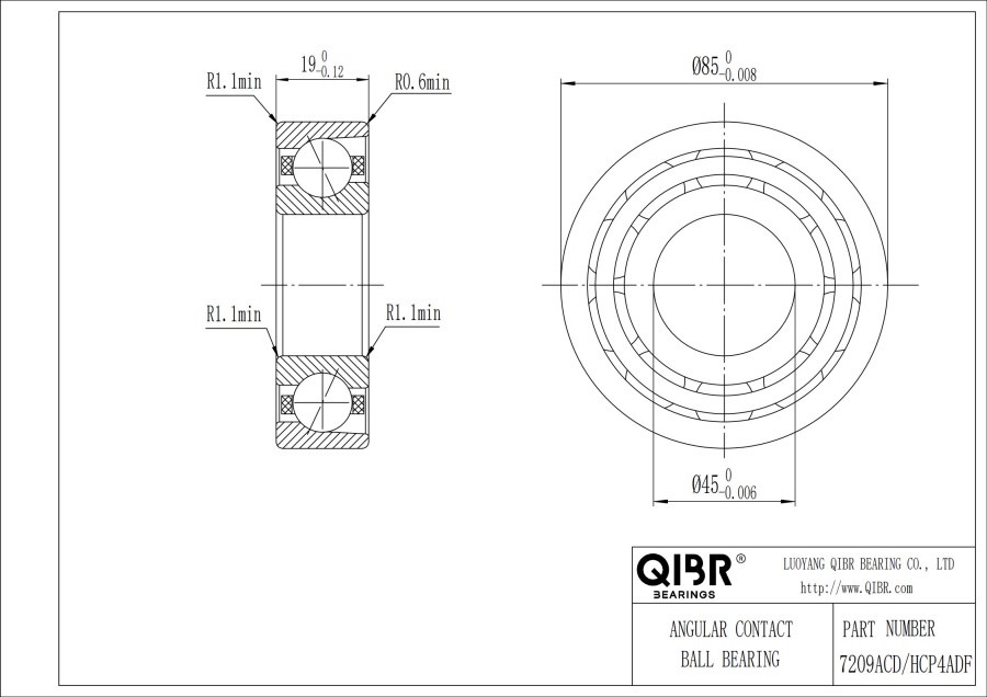 QIBR - 7209ACD/HCP4ADF Schrägkugellager Eigenschaften