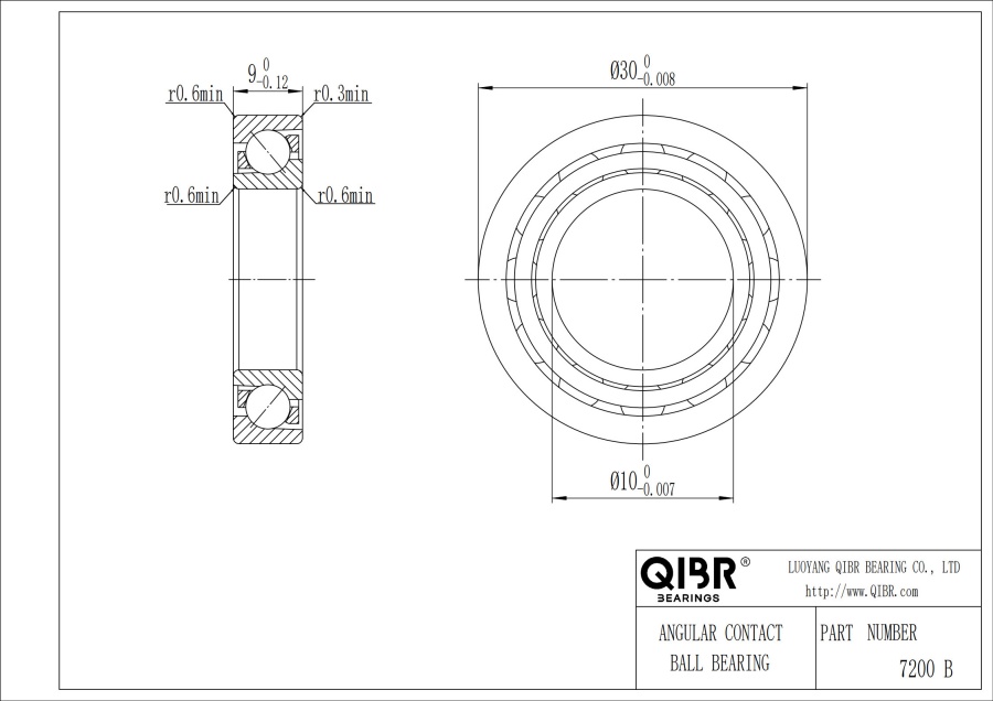 7200 B Schrägkugellager, hohe Präzision, hohe Tragfähigkeit, Inner diameter (d) ist 10 mm, Outer diameter (D) ist 30 mm, Width (B) ist 9 mm, Mass ist 0.03 kg. Es eignet sich für Zykloidenreduzierer, Reparaturschweißmaschinen, Druckerhöhungspumpen und Gasturbinen usw. und ist das am häufigsten verwendete Lager unter Arbeitsbedingungen mit Anforderungen an hohe Präzision.