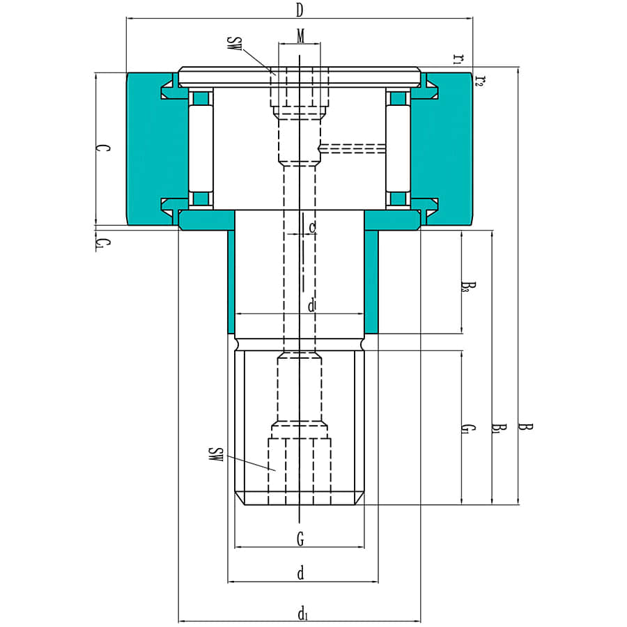 Eine Kurvenrolle, auch als Stützrolle bekannt, ist eine spezielle Art von Rollen- oder Nadellager zur Folgerung der Ausbuchtung des Nockens. Bei Kurvenrollen gibt es unterschiedliche Konfigurationen. Das wichtigste Merkmal ist jedoch, wie die Kurvenrolle an ihrem zusammengepassten Teil befestigt ist. Bei Kurvenrollen in Bolzenausführung wird ein Bolzen verwendet, während die Jochausführung in der Mitte ein Loch aufweist.