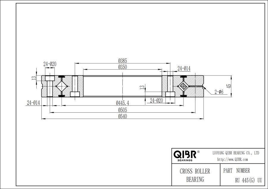 RU 445(G) UU Kreuzrollenlager, lange Lebensdauer, platzsparend, vielseitig einsetzbar. RU 445(G) UU Kreuzrollenlager, kann gleichzeitig Radiallast, Axiallast und bestimmte Kipplasten tragen, geeignet für mechanische Geräte mit hohen Anforderungen an stabilen Betrieb.