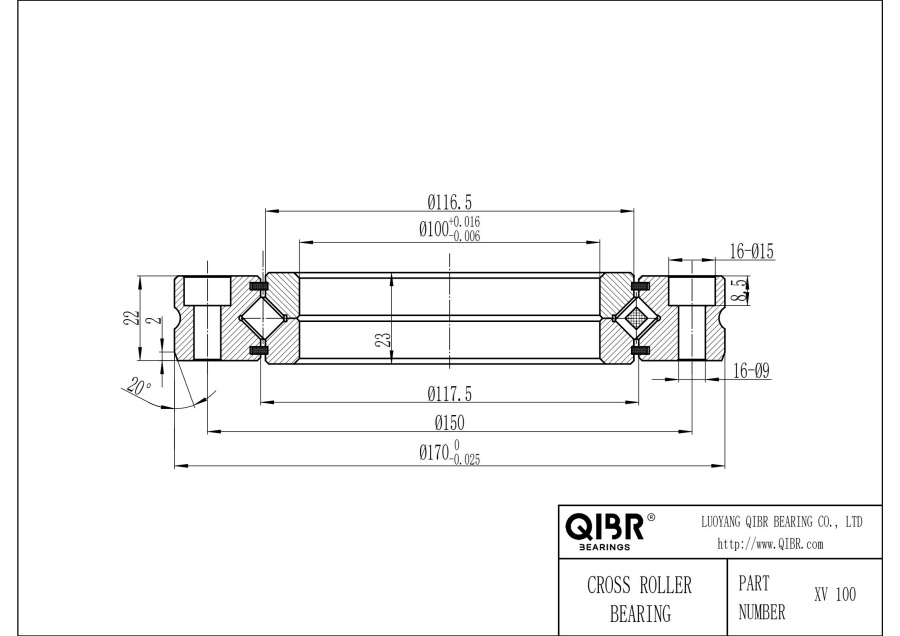 XV 100 Kreuzrollenlager, hohe Zuverlässigkeit, reduzierte Fehlerquote, einfache Wartung. XV 100 Kreuzrollenlager, kann gleichzeitig Radiallast, Axiallast und einer gewissen Kipplast standhalten, geeignet für mechanische Geräte mit Anforderungen an hohe Geschwindigkeit.