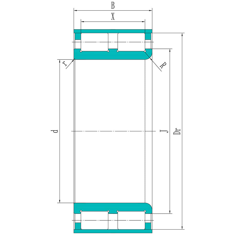 2508 Zylinderrollenlager, kompakte Struktur, starke Verschleißfestigkeit, Bore ist 32 mm, Outer envelope circle (Dr) ist 46.6 mm, Width (B) ist 25 mm. Es ist geeignet für Stranggießmaschinen, Hauptwellen von Windkraftanlagen und Siebmaschinen usw. und das am häufigsten verwendete Lager unter Arbeitsbedingungen mit hohen Leistungsanforderungen.