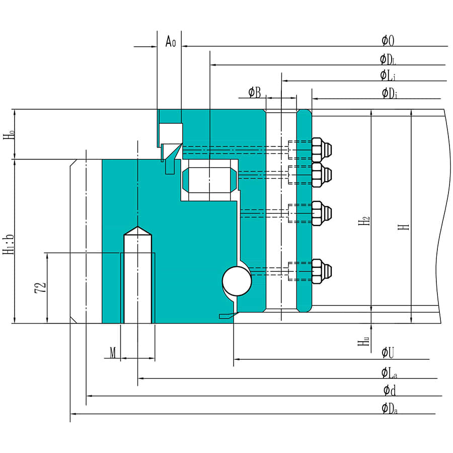 121.45.5600.990.41.1502 Drehverbindung, starke Tragfähigkeit, hohe Präzision, {$Inner diameter (di)$} ist {$Inner diameter (di)_value$}, Outer diameter (Da) ist 5891.6 mm, Overall height (H) ist 203 mm, Weight ist 5764 kg. Sie eignen sich für Kräne, Windturbinen, Bagger usw. Sie sind ein weit verbreitetes Lager in der Maschinenindustrie.