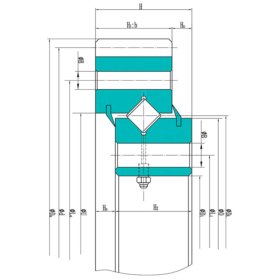 161.28.1600.890.11.1503 Drehverbindung mit guter Rotationsleistung und hoher Positionierungsgenauigkeit, {$Inner diameter (di)$} ist {$Inner diameter (di)_value$}, {$Outer diameter (da)$} ist {$Outer diameter (da)_value$}, {$Overall height (h)$} ist {$Overall height (h)_value$}, Weight ist 388 kg. Sie eignet sich für Planierraupen, Tunnelbohrmaschinen und Riesenräder usw. und ist das am häufigsten verwendete Lager unter Arbeitsbedingungen mit hohen Präzisionsanforderungen.