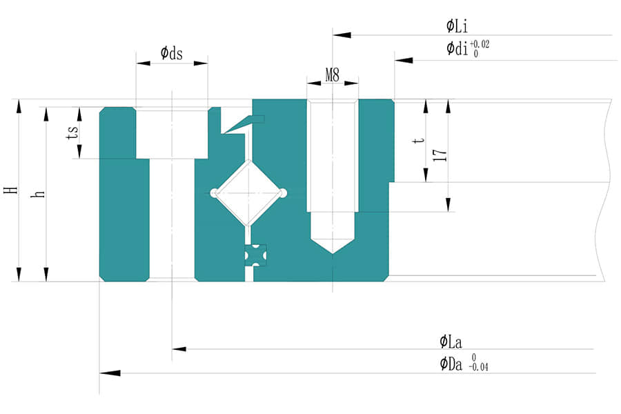 XU 08 0120 Drehverbindung, hohe Präzision, starke Vibrationsfestigkeit, stabiler Betrieb, Inner diameter (di) ist 69 mm, Outer diameter (Da) ist 170 mm, Overall height (H) ist 30 mm, Weight ist 4 kg. Sie eignet sich für CNC-Werkzeugmaschinen, hochpräzise Werkzeugmaschinen und optische Instrumente, Zentrifugen, Gebläse und Kompressoren usw. Sie ist das am häufigsten verwendete Lager unter Arbeitsbedingungen, die einen stabilen Betrieb erfordern.
