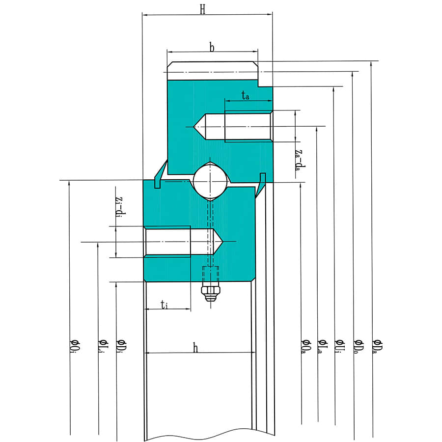600DBS204y Drehverbindung hat starke Tragfähigkeit, große Flexibilität und hohe Fertigungspräzision. {$Inner diameter (di)$} ist {$Inner diameter (di)_value$}, {$Outer diameter (da)$} ist {$Outer diameter (da)_value$}, {$Overall height (h)$} ist {$Overall height (h)_value$}, Weight ist 78 kg. Sie eignet sich für Bagger, Roboter, Solarhalterungen, Windturbinen und Greifer usw. und ist das am häufigsten verwendete Lager, das schwere Lasten tragen muss.