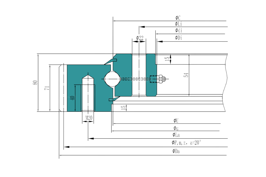 E.1200.25.00.B Drehverbindung mit hoher Rotationsgenauigkeit und starker Verschleißfestigkeit, Inner diameter (Di) ist 955 mm, Outer diameter (Da) ist 1198 mm, Weight ist 171 kg. Sie ist geeignet für hochpräzise Werkzeugmaschinen, Solarstromerzeugungsanlagen, Windturbinen und Tiefbohrgeräte usw. und ist das am häufigsten verwendete Lager unter Arbeitsbedingungen, die hohe Präzision erfordern.