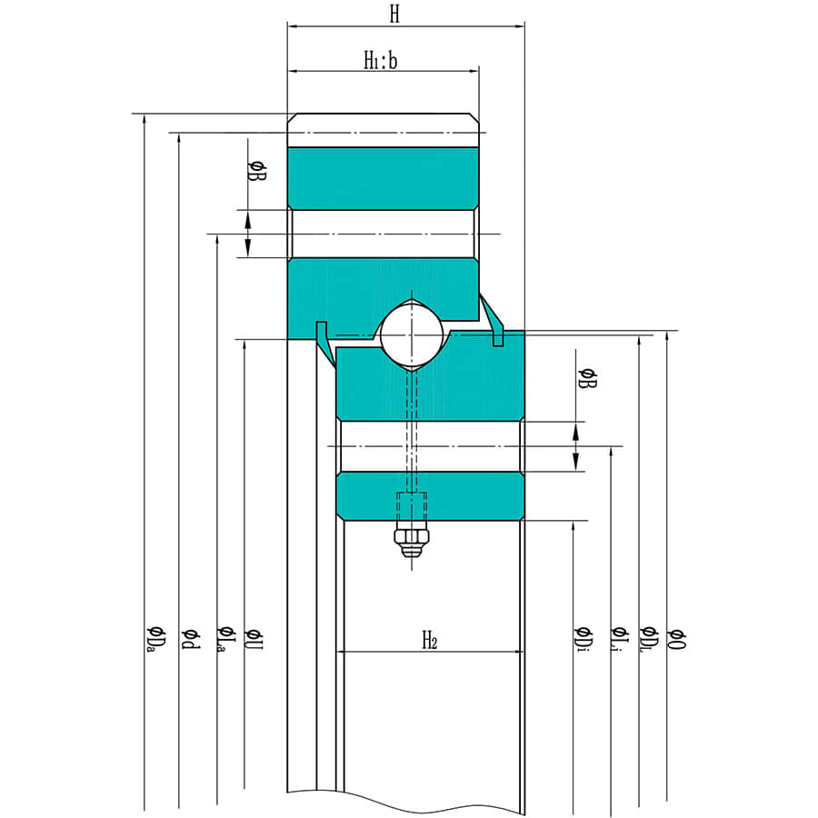 061.25.0980.890.11.1503 Drehverbindung, hohe Geschwindigkeit, kompaktes Design, starke Vibrationsfestigkeit, {$Inner diameter (di)$} ist {$Inner diameter (di)_value$}, {$Outer diameter (da)$} ist {$Outer diameter (da)_value$}, {$Overall height (h)$} ist {$Overall height (h)_value$}, Weight ist 124 kg. Sie eignet sich für Füllmaschinen, Förderbänder, Planierraupen, Tunnelbohrmaschinen und Riesenräder usw. und ist das am häufigsten verwendete Lager unter Arbeitsbedingungen, die hohe Geschwindigkeit erfordern.
