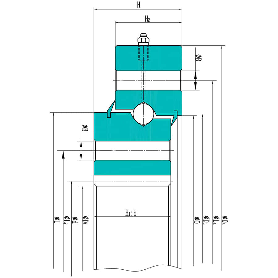 062.40.1500.001.29.1504 Drehverbindung, hohe Geschwindigkeit, kompaktes Design, starke Vibrationsfestigkeit, {$Inner diameter (di)$} ist {$Inner diameter (di)_value$}, {$Outer diameter (da)$} ist {$Outer diameter (da)_value$}, {$Overall height (h)$} ist {$Overall height (h)_value$}, Weight ist 410 kg. Sie eignet sich für Füllmaschinen, Förderbänder, Planierraupen, Tunnelbohrmaschinen und Riesenräder usw. und ist das am häufigsten verwendete Lager unter Arbeitsbedingungen, die hohe Geschwindigkeit erfordern.