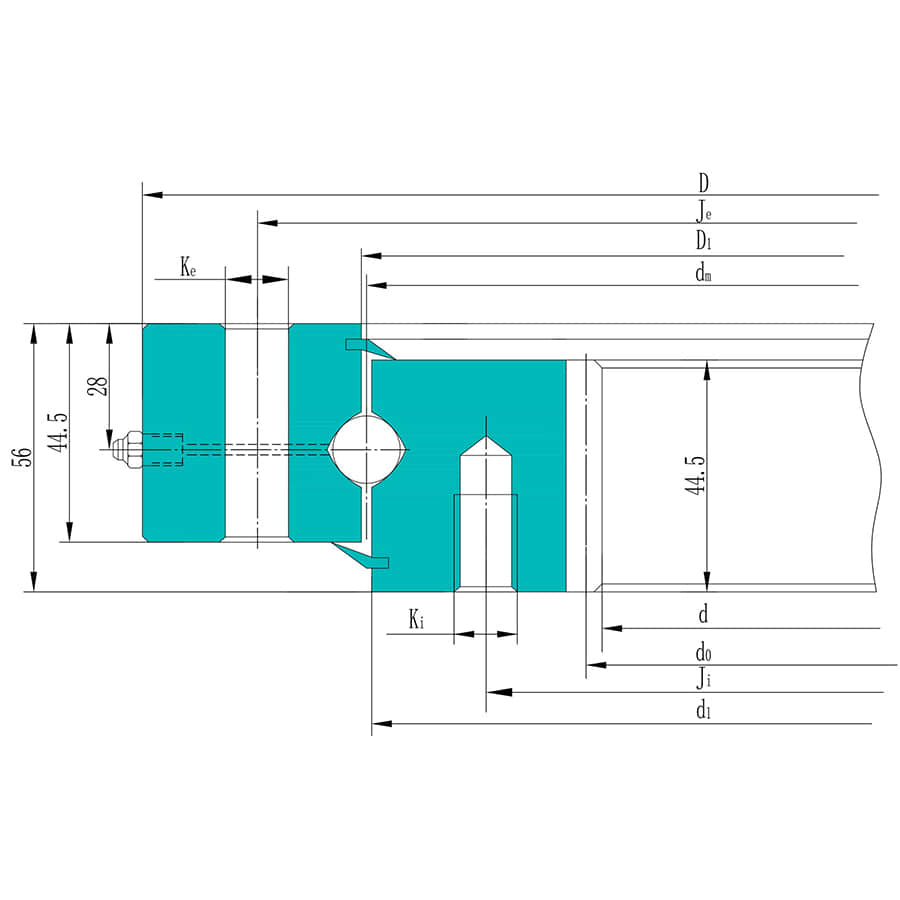 RKS.062.20.0744 Drehverbindung hat eine kompakte Struktur, hohe Tragfähigkeit und einen niedrigen Reibungskoeffizienten. Inner diameter (d) ist 649.2 mm, Outer diameter (D) ist 816 mm, Weight ist 58 kg. Sie eignet sich für Solarnachführsysteme, LKW-Kräne, Drehvorrichtungen für Satellitenantennen und Drehbohrer usw. und ist das am häufigsten verwendete Lager unter Arbeitsbedingungen, die hohe Tragfähigkeit erfordern.