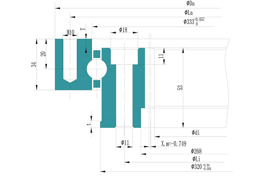 Hohe Tragfähigkeit: Kann axiale, radiale und Kippmomente gleichzeitig aufnehmen und ist für Schwerlastanwendungen geeignet.