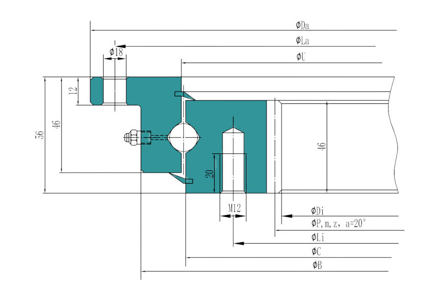 I.750.20.00.C Drehverbindung, hoher Sicherheitsfaktor, einfache Installation. I.750.20.00.C Drehverbindung, kann gleichzeitig Radiallast, Axiallast und Kippmoment aufnehmen, geeignet für mechanische Geräte mit hohen Präzisionsanforderungen.