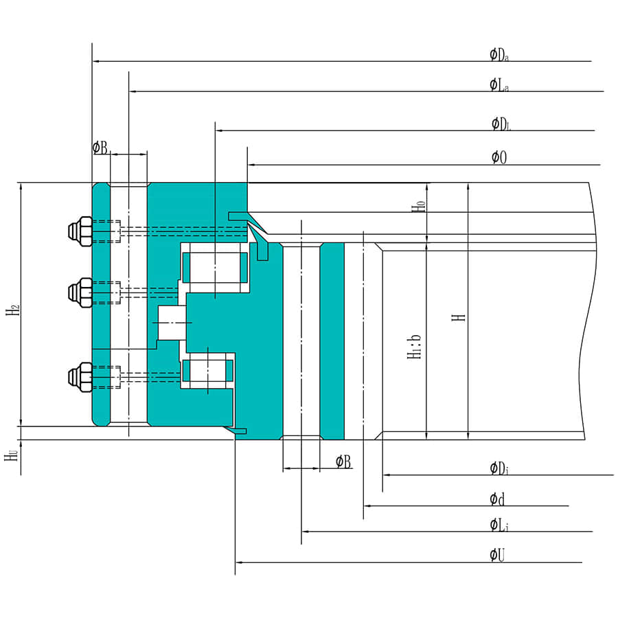 192.32.3550.990.41.1502 Drehverbindung, starke Tragfähigkeit, reibungsloser Betrieb, {$Inner diameter (di)$} ist {$Inner diameter (di)_value$}, {$Outer diameter (da)$} ist {$Outer diameter (da)_value$}, {$Overall height (h)$} ist {$Overall height (h)_value$}, Weight ist 3307 kg. Sie eignet sich für Hochgeschwindigkeitszüge, Flugzeuge, Offshore-Bohrplattformen, Turmdrehkrane und Hubarbeitsbühnen usw. Sie ist das am häufigsten verwendete Lager unter Arbeitsbedingungen, die hohe Präzision erfordern.