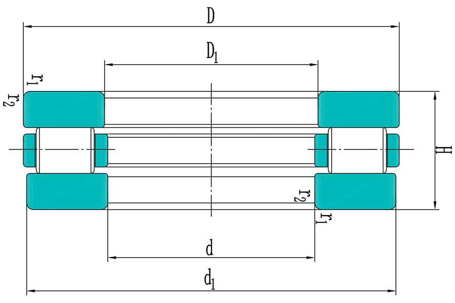 81110 TN Axialrollenlager, hohe axiale Tragfähigkeit, geringe Reibung, Bore ist 50 mm, Outer diameter (D) ist 70 mm, Height (H) ist 14 mm, Mass ist 0.14 kg. Es ist geeignet für Autokupplungen, Getriebe und Laufradhalterungen von Lüftern usw. und ist das am häufigsten verwendete Lager mit hoher axialer Tragfähigkeit.