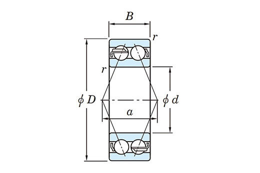 In anderen Szenarien kann ein einziges zweireihiges Schrägkugellager ausreichen. Diese Ausführung integriert zwei Schrägkugellager Rücken an Rücken in denselben Ring. Im Querschnitt besteht es im Wesentlichen aus zwei einzelnen Schrägkugellagern. Sein Hauptvorteil ist die geringere Breite im Vergleich zu zwei einreihigen Lagern, was Platz spart und Montage vereinfacht – funktional entspricht es einem Paar einreihiger Lager in O-Anordnung.
